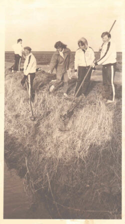 Um trockenen Fußes von einem Ort zum nächsten zu gelangen, musste man sich etwas zum Überqueren der zahlreichen Entwässerungsgräben ausdenken. Die Wahl fiel auf einen 3 bis 5 Meter langen Stab, zumeist aus Eschenholz. Ein Einsinken im Graben verhindert ein ca. 30cm großer „Teller“ am unteren Ende. Mit genug Schwung und der richtigen Technik ließ und lässt sich so fast jeder Graben überwinden.