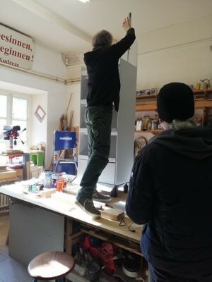 Die meiste Zeit des Praktikums war ich in den Aufbau der Duckomenta eingespannt. Nichtsdestotrotz habe ich auch Einblicke in die Bibliothek und in das Inventarisieren von Glasdias gewinnen können.In der Bibliothek erwartete mich geballte Regionalgeschichte, die sich in Zeitungsartikeln und Briefen vom frühen 20. Jahrhundert bis 2011 entfaltete. Meine Aufgabe war die Entnahme der Rahmeninformationen und die Einspeisung in eine Tabelle, sodass die noch folgende Digitalisierung erleichtert wird. Man munkelt, dass es die ideale Aufgabe für Praktikant:innen sei. Spannend waren ganze Zeitungsseiten die, neben dem im Vordergrund stehenden Artikel, auch über andere interessante Themen berichten. So fand ich beispielsweise eine großflächige Informationsanzeige für die Olympischen Winterspiele 1936 in Garmisch-Patenkirchen. Neben Einblicken in die Regionalgeschichte, konnte ich aus verschiedenen Perspektiven auf die Alltagsgeschichte blicken. Dadurch, dass neben den Zeitungsartikeln auch Briefe enthalten waren, lernte ich die schriftsprachlichen Konventionen verschiedener Jahrzehnte kennen. Jedoch muss ich gestehen, dass ich die handschriftlichen Briefe und Urkunden aus den 1890er Jahren nur schwer entziffern konnte.