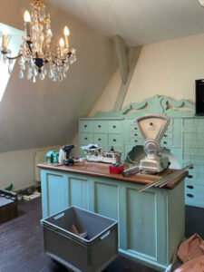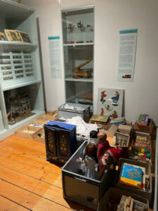 Im Rahmen meines zweiwöchigen Praktikums durfte ich das Team rund um den Umbau unterstützen. Egal ob sortieren, aus- und einräumen oder auch aufbauen, überall war etwas zu tun und mein Tag war mit Aufgaben gefüllt. Langweilig wurde es nicht, denn von den Lampen bis zu den Wänden und der Aufteilung der verschiedenen Themen in den unterschiedlichen Räumen, wurde alles verändert. Angefangen wurde mit dem Ausräumen und Sortieren der verschiedenen Dinge, Infotafeln und Bilder wurden von den Wänden entfernt und der alte Kaufmannsladen fand Einzug in einen anderen Raum, wo er wieder richtig zur Geltung kommt und einen Einblick in den Alltag aus vergangenen Zeiten gewährt.Im Anschluss wurden neue Möbel angeschafft und aufgebaut, um die verschiedenen Themen für die Aktionen mit den Kindern zu organisieren. Prinzessinnenkleider, Schwerter, Steckenpferde und ganz viele Bastelsachen fanden einen neuen Platz. Bald können die Kinder ihre Geburtstage in einem neu gestalteten Bereich feiern und beim Verkleiden, Basteln und Spielen das Schloss und die Geschichte ihrer Heimat kennenlernen.