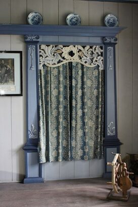 Fliesenzimmer: Seit der Mitte des 17. Jahrhunderts begann die wohlhabende ländliche Bevölkerung der Küstenregion ihre heizbaren Wohn- und Schlafräume mit Fliesen auszustatten. Zumeist beschränkte man sich auf die feuchten Außenwände und die Seite mit dem Ofen. Der erhielt durch diese Maßnahme ein repräsentatives Aussehen, welches durch die großflächigen Fliesentableaus mit figürlichen Darstellungen, wie z.B. Tiere oder Schiffe, noch verstärkt wurde. Die Fliesen stammen aus den Niederlanden und wurden in den Fayence-Manufakturen von Harlingen oder Makkum gefertigt.