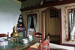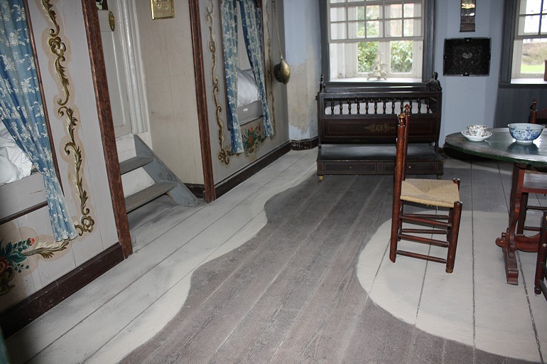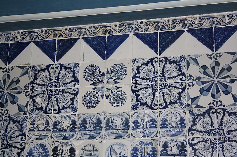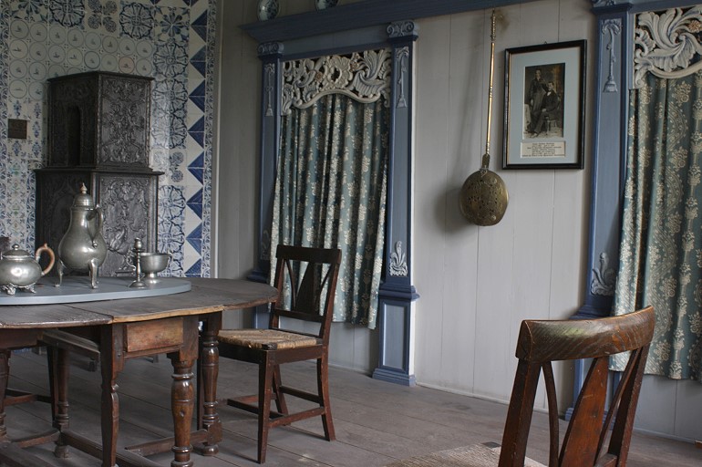 Fliesenzimmer: Seit der Mitte des 17. Jahrhunderts begann die wohlhabende ländliche Bevölkerung der Küstenregion ihre heizbaren Wohn- und Schlafräume mit Fliesen auszustatten. Zumeist beschränkte man sich auf die feuchten Außenwände und die Seite mit dem Ofen. Der erhielt durch diese Maßnahme ein repräsentatives Aussehen, welches durch die großflächigen Fliesentableaus mit figürlichen Darstellungen, wie z.B. Tiere oder Schiffe, noch verstärkt wurde. Die Fliesen stammen aus den Niederlanden und wurden in den Fayence-Manufakturen von Harlingen oder Makkum gefertigt.
