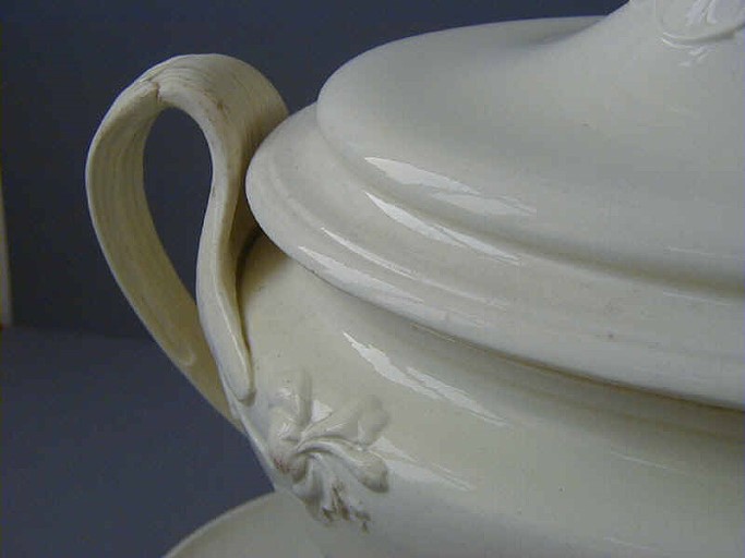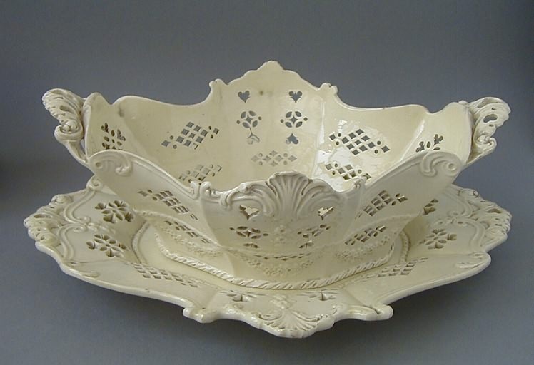 In England wurde eine preisgünstige Alternative zu Porzellan erfunden, die im Aussehen und in der Leichtigkeit dem Vorbild sehr nah kam. Das englische Steingut kam verstärkt durch den Seehandel an die norddeutsche Küste und erfreute sich großer Beliebtheit. Durch ein mechanisches Verfahren war es möglich, zahlreiche Dekorationen auf die Geschirre zu bringen. Daneben gab es figürlichen Raumschmuck, wie die belliebten plastischen Hunde (stoffordshire dogs), die in den Stuben der Region Einzug hielten.
