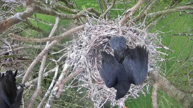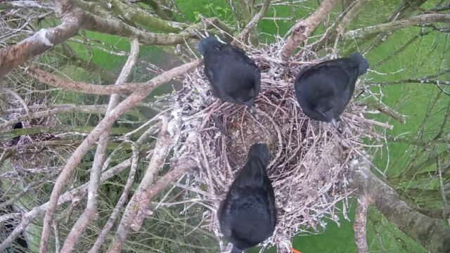 Im Rahmen des Projekts „Live dabei“, das gemeinsam vom Schlossmuseum Jever, der Wissenschaftlichen Arbeitsgemeinschaft für Natur- und Umweltschutz Jever (WAU), der Mobilen Umweltbildung MOBILUM des NABU Niedersachsen, des NABU Jever und um zu sowie des Projektes „Naturkieker“ der Oldenburgischen Landschaft durchgeführt wird, wurde in diesem Jahr bereits zum fünften Mal in Folge eine Webcam auf das Saatkrähennest der Saatkrähe „Mathilde“ im Schlosspark Jever freigeschaltet. Um die 60.000 Mal klickten sich Interessierte via Webcam direkt ins Brutgeschehen. Nachdem die drei flügge gewordenen Jungvögel das Nest verlassen haben, wurde die Kamera abgestellt und wartet auf ihren Einsatz in 2024.