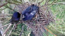 „Der Livestream wurde 2024 über 47.000-mal angeklickt, das Projekt wird bundesweit rege wahrgenommen. Uns erreichten auch in diesem Jahr wieder Anfragen und Rückmeldungen aus dem gesamten Bundesgebiet“, berichtet die Arbeitsgruppe. „Wir freuen uns sehr über diese große Resonanz, denn das Ziel des Projektes ist es, über die Lebensweise der Saatkrähen, die als Koloniebrüter während der Brutzeit als lautstarke ‚Nachbarn‘ auch in einigen Städten und Dörfern leben, aufzuklären“. Über die Kamera konnte beispielsweise wieder sehr gut das Fütterungsverhalten und auch das Nahrungsspektrum der sozialen Vögel beobachtet werden. An die Küken wurden Regenwürmer, Insekten und Insektenlarven verfüttert. Die ausgewachsenen Vögel ernähren sich, wie der wissenschaftliche Name „Corvus frugilegus“ (übersetzt „der Früchte sammelnde Rabe“) es vermuten lässt, auch von Samen, Eicheln, Nüssen etc. „Wer in diesem Tagen mit offenen Augen durch die Landschaft spaziert oder fährt, kann die Alt- und Jungvögel dabei beobachten, wie sie auf den Wiesenflächen im Umland Jevers mit ihren hellen Stocherschnäbeln – daran kann man sie von den Rabenkrähen unterscheiden – im Boden nach Regenwürmern und Insekten suchen. Das Nest wird von den Jungvögeln nicht wieder aufgesucht, daher wird nach der von den Rufen der Vögel geprägten Brutsaison im Schlosspark Jever nun Ruhe einkehren.